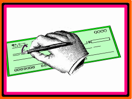 I decorated 10 shoeboxes with a slit in the top for the checks and with a title on the top and side of the box; the title specifies which payment(s) are to be placed in the box. I placed the boxes on tables around the perimeter of the room. Signs hung from the ceiling with the same titles that appeared on the shoe boxes directly below. There were consultants at some of the tables (see below). Stations 2-7 could be consolidated by placing more items in one box to save space. However, the ideal would have been to have a separate box for each of the expense categories. Three stations must have adult consultants; the luxury station needs a person of any age who can keep order (See Table Descriptions below).