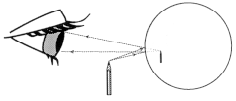 In the ray diagram above, notice the reflection of two rays of light from a particular point at the tip of the pencil. Your eye and brain follow these reflected rays backward along a straight line to their apparent intersection behind the mirror. All other reflected rays from the point also seem to originate at this intersection. The reflected rays from all other points on the pencil also appear to intersect at specific points behind the mirror. All these intersection points put together create what's called a virtual image.