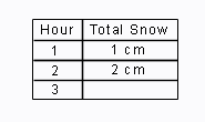 - Ask students to verbally describe the pattern or the rule (e.g., every hour another centimeter of snow falls, the total amount of snow is equal to the number of hours it snowed).
